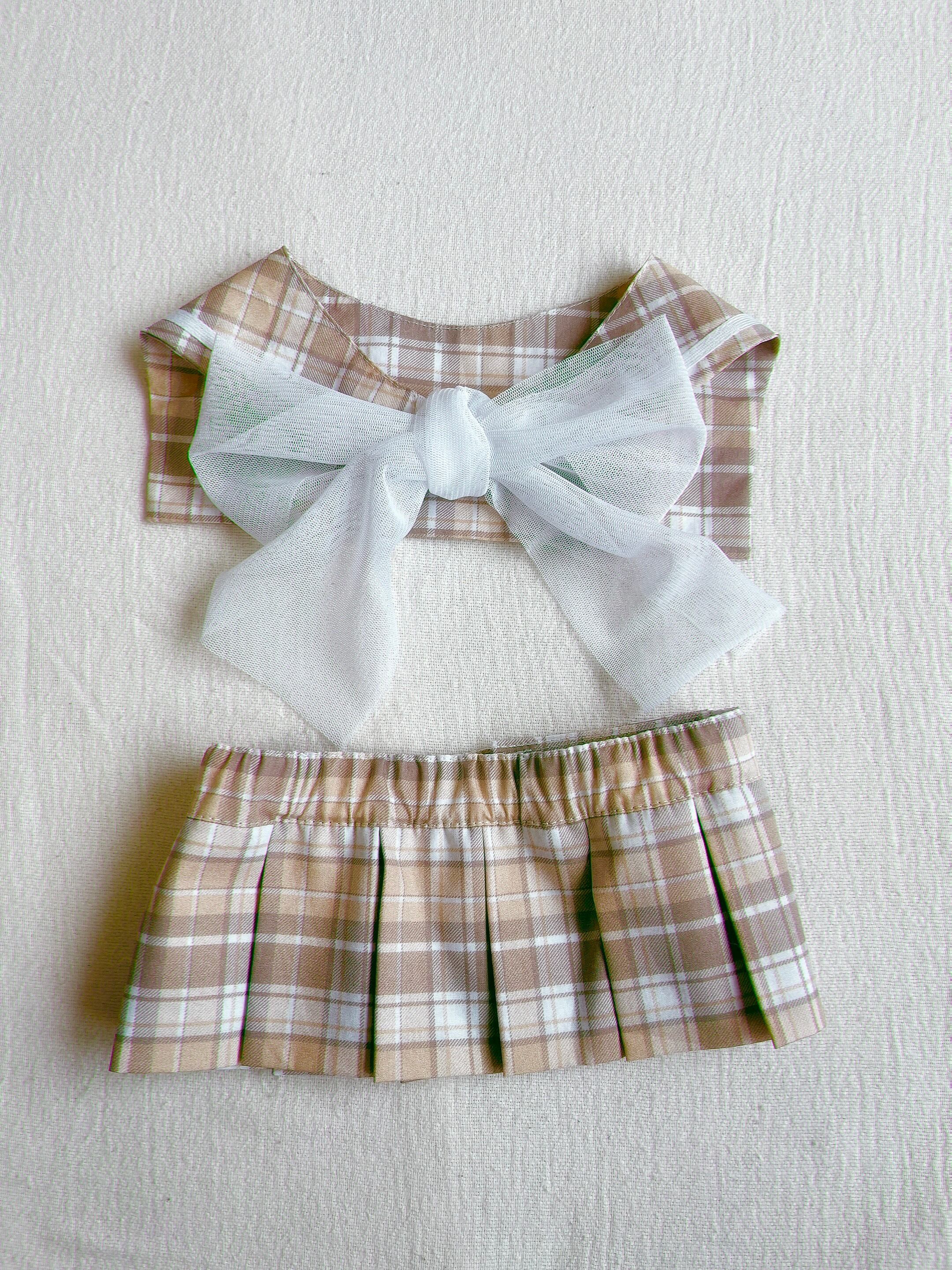 別売りのプリーツスカートと色味の近いチェック生地を使用しており、